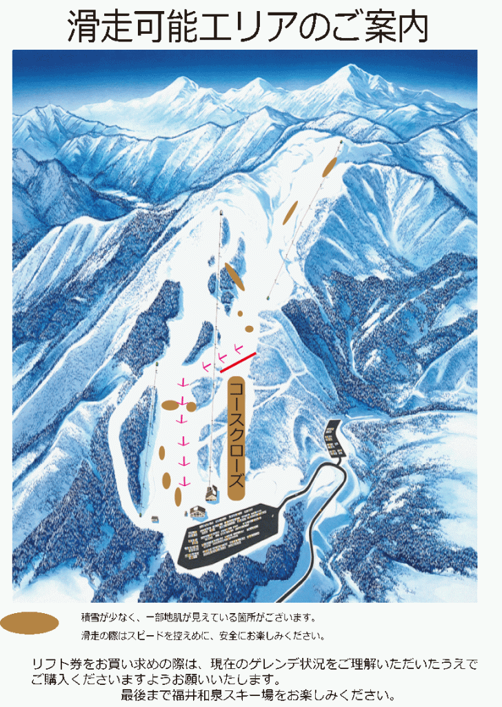 積雪不足により、コースの一部を規制して営業させて頂きます。